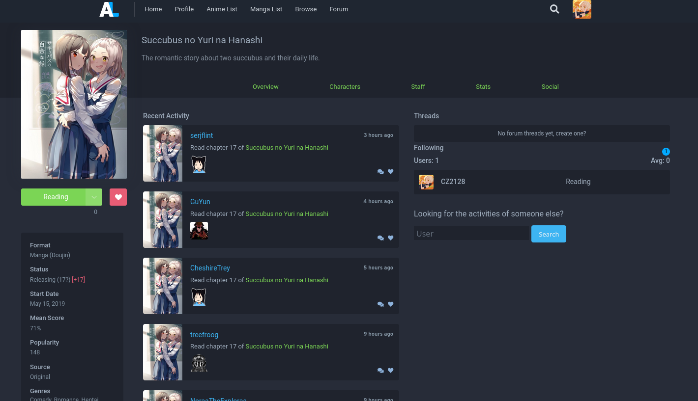 [O] Start: DD/MM/YYYY Finish: DD/MM/YYYY Take-off or Landing! Read a manga that has a continuous rise or fall in activeness for at least 3 consecutive days in its activity stats Manga Title Screenshot: