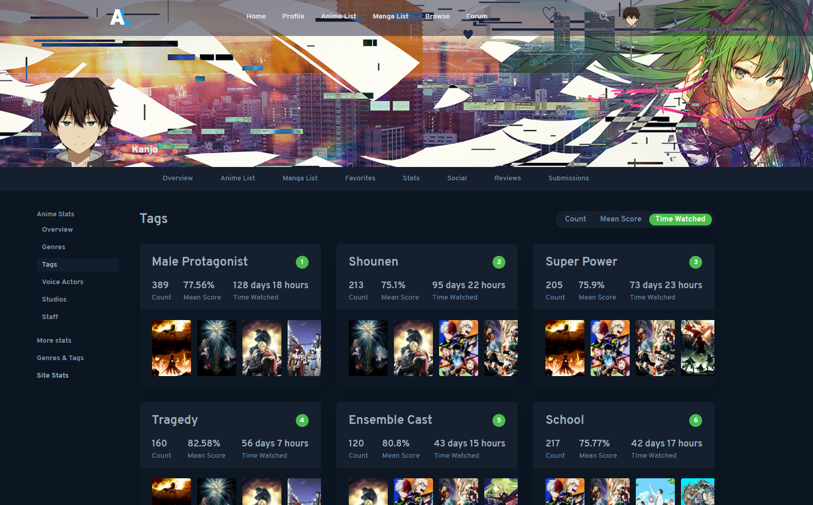 [O] Watch an anime with your 2nd most watched tag by “Time Watched”