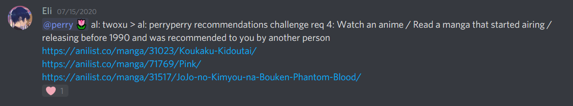 🗣️ Watch an anime / Read a manga that was recommended by another participant in their post