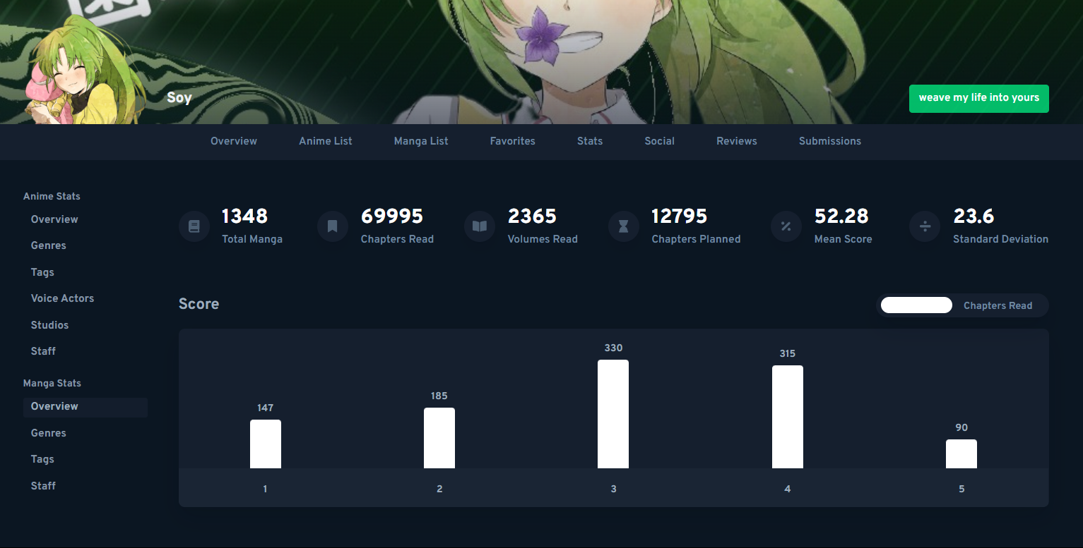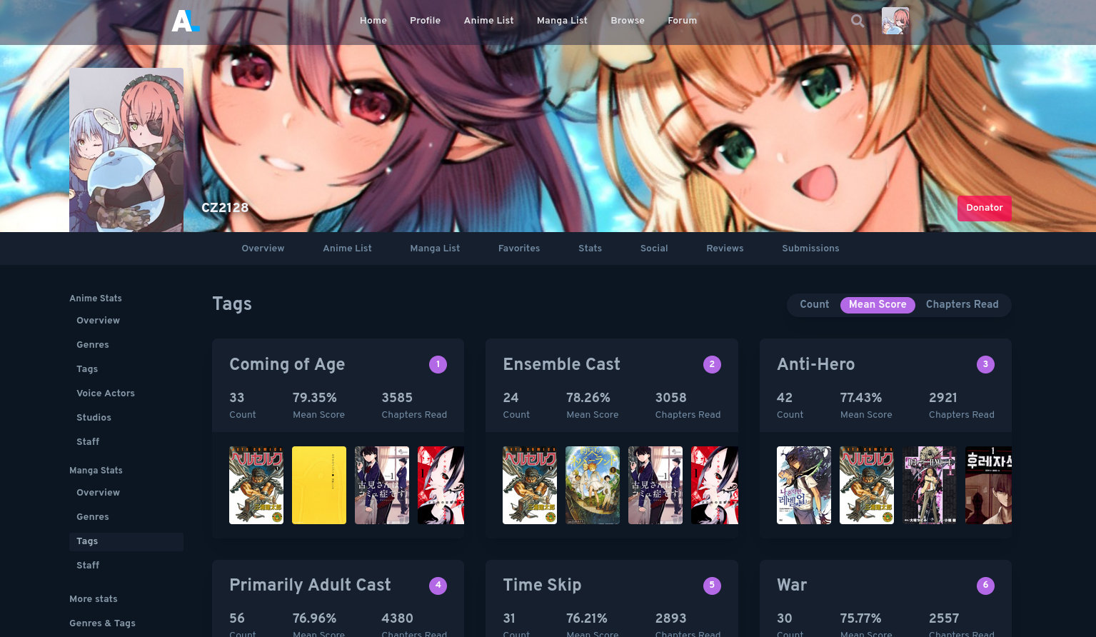 [✔️] Preventative Maintenance: Read a manga with your least favourite genre and your favourite tag by Mean Score