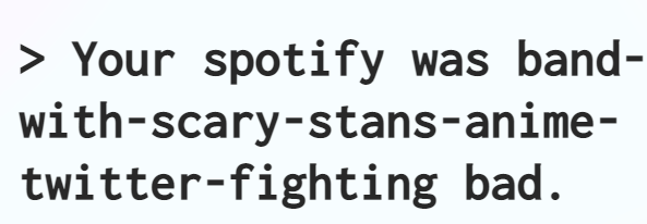 This was cool but I have like two songs from khalid so I'm a little confused, it basically called me a basic bitch, even though it said 36% basic, RIP.\