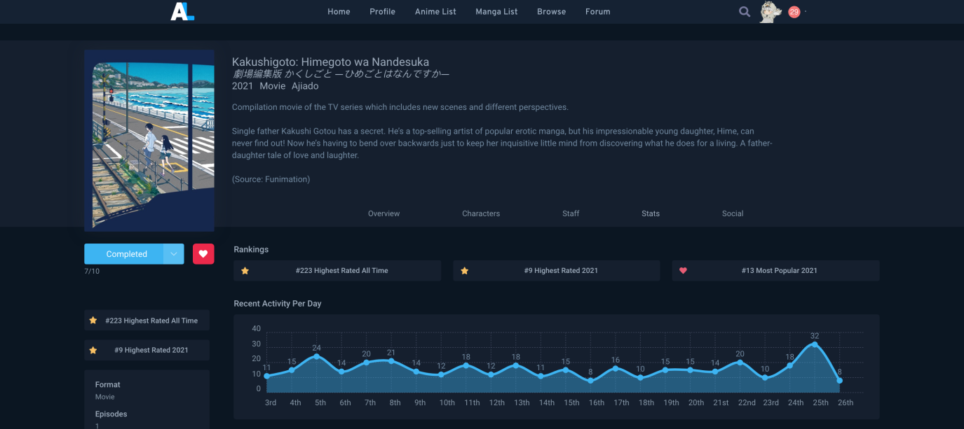 [✔️] Steeplechase: Watch an anime with at least 7 peaks on its Recent Activity graph
