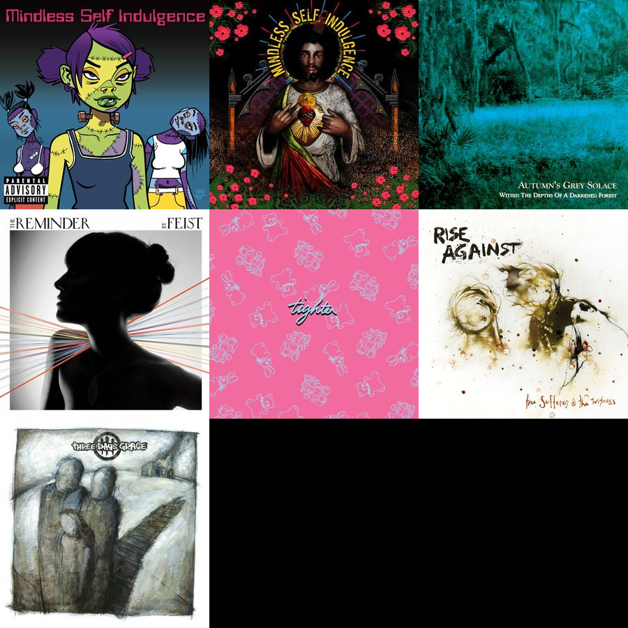 Middle row: You've Come a Long Way Baby by Fatboy Slim. Rage Against the Machine by Rage Against the Machine. White Pony by Deftones.