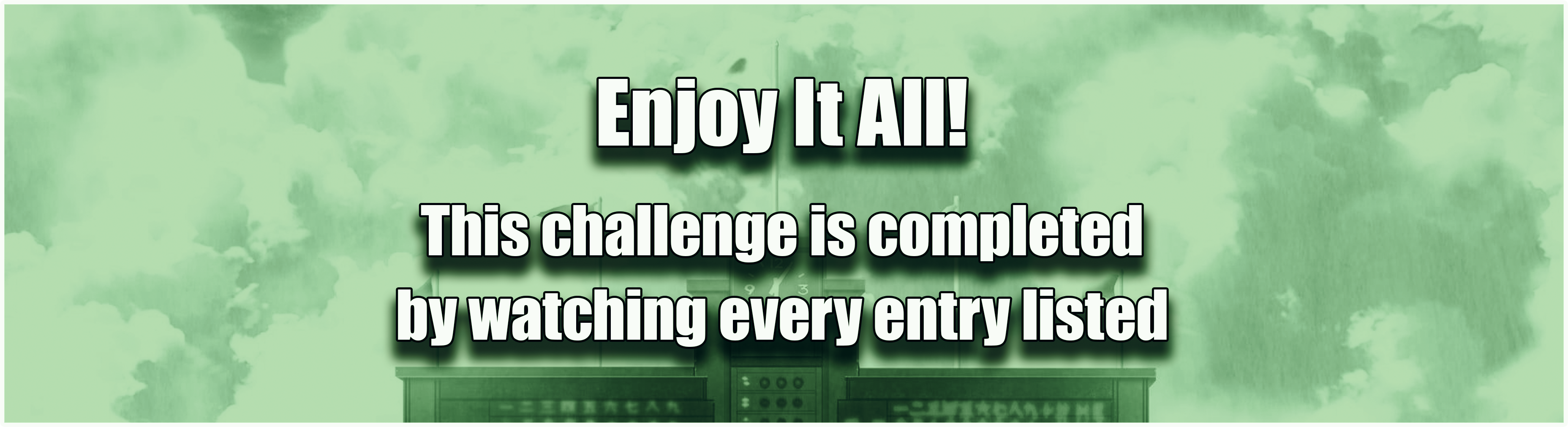 If you are having a difficult time finding an anime to fulfil a certain requirement, please feel free to ask us on Discord, ask in our Challenge Discussion Thread, or ask a fellow AniList member for a recommendation.