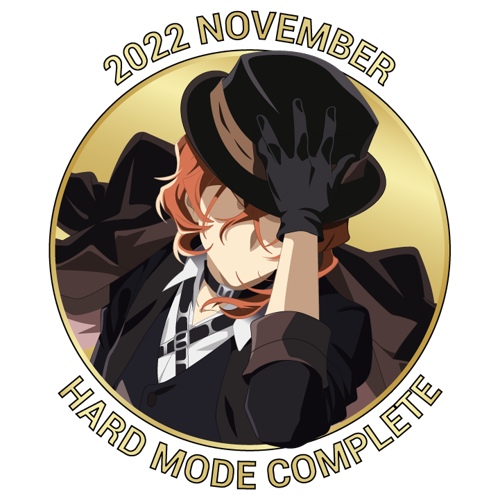 Start: 2022-11-22 Finish: 2022-11-30 // Character: Edgar Allan Poe // Proof: "Poe is a detective from America... He then joined the Guild and came to Japan..."