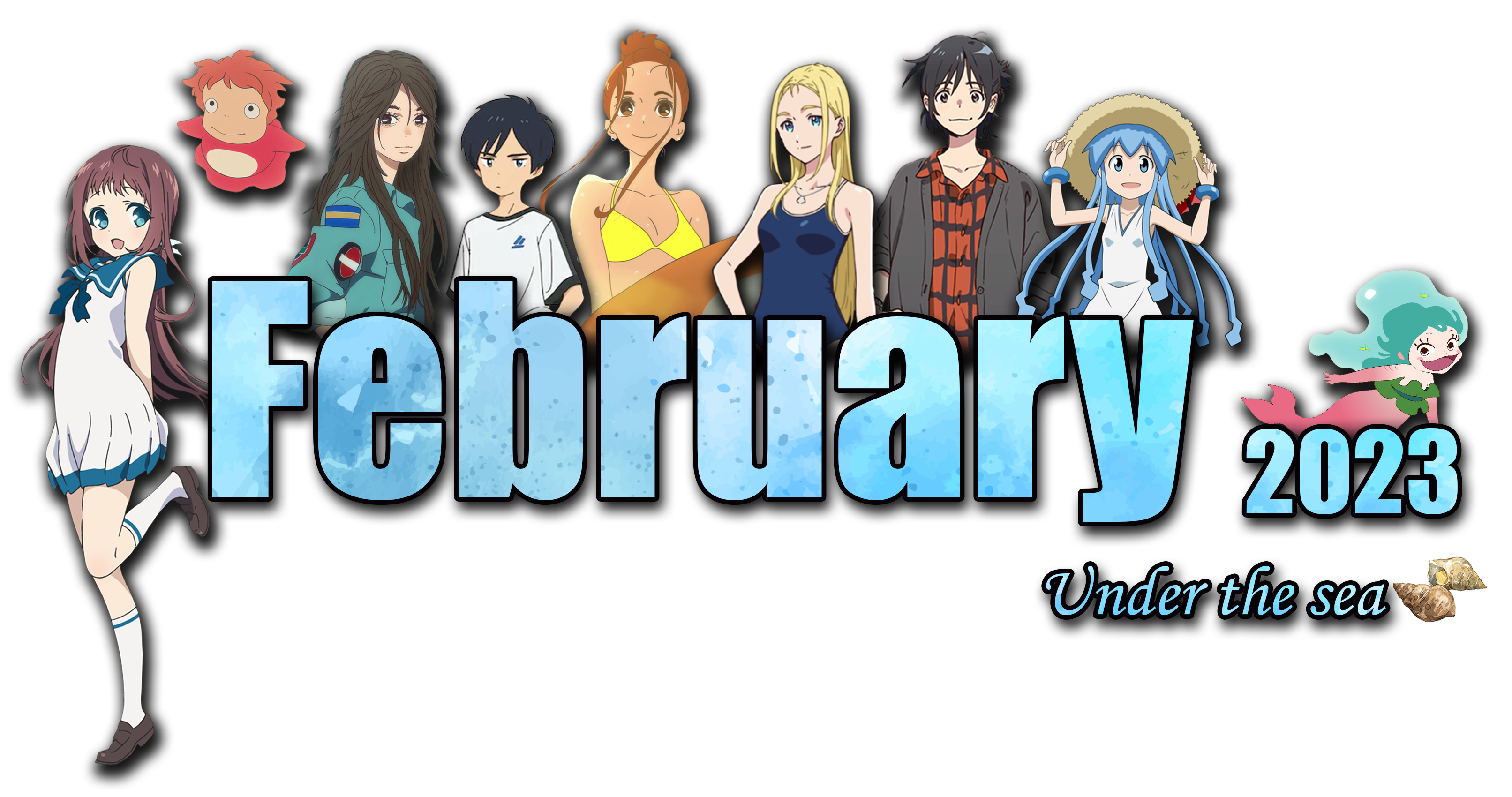 GFX: Manaka Mukaido (Nagi no Asukara), Ponyo (Gake no Ue no Ponyo), Anglade (Kaijuu no Kodomo), Kousuke Kumagaya (Ame wo Tsugeru Hyouryuu Danchi), Hinako Mukaimizu (Kimi to, Nami ni Noretara), Ushio Kofune (Summer Time Render), Mio Chibana (Umibe no Étranger), Ika Musume (Shinryaku! Ika Musume), Lu (Yoake Tsugeru Lu no Uta)