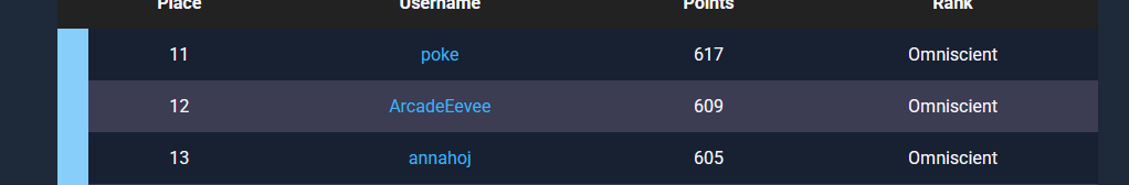 Start: YYYY-MM-DD Finish: YYYY-MM-DD // User: // Username’s Profile // Screenshot // Character: Character