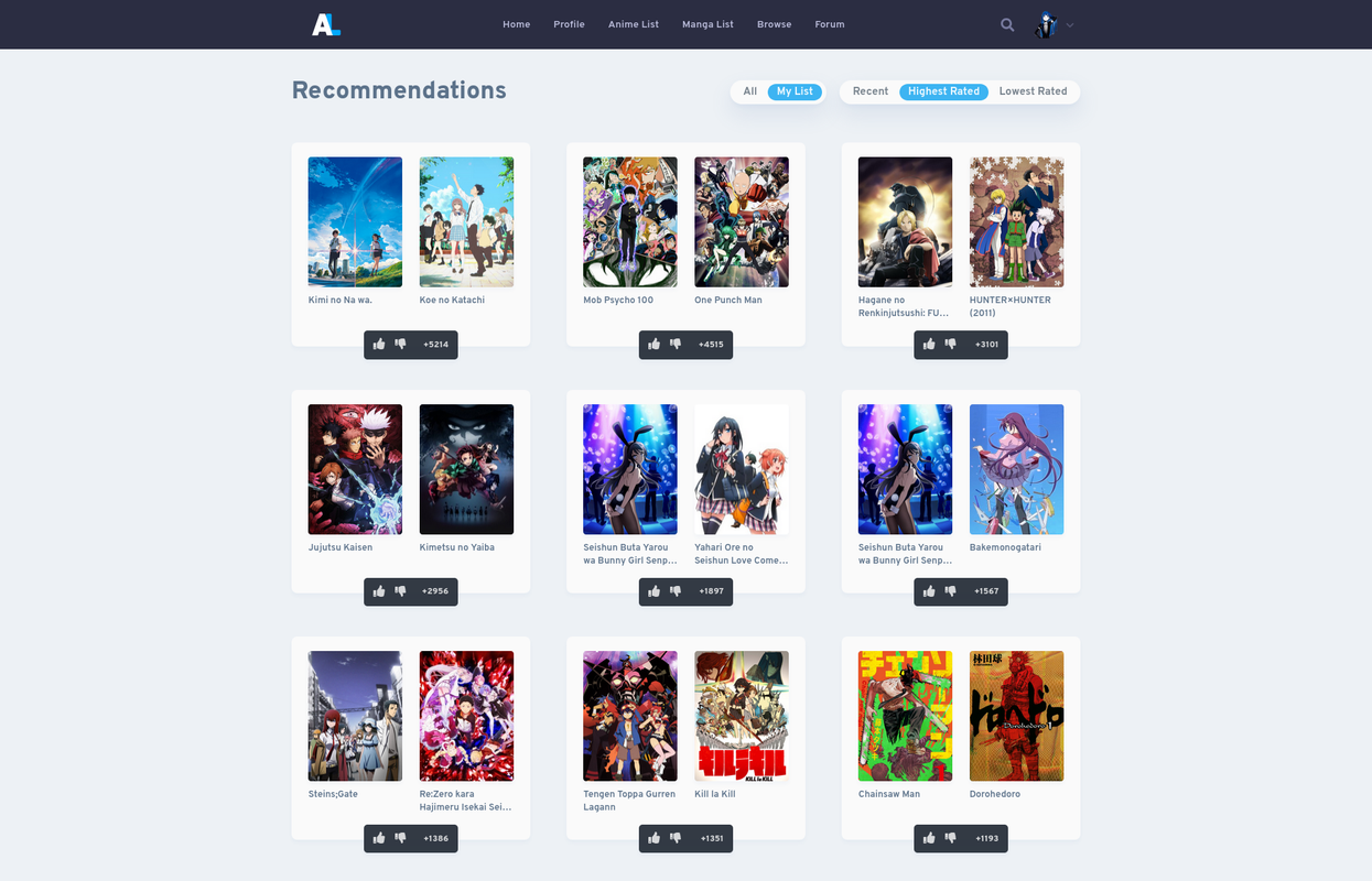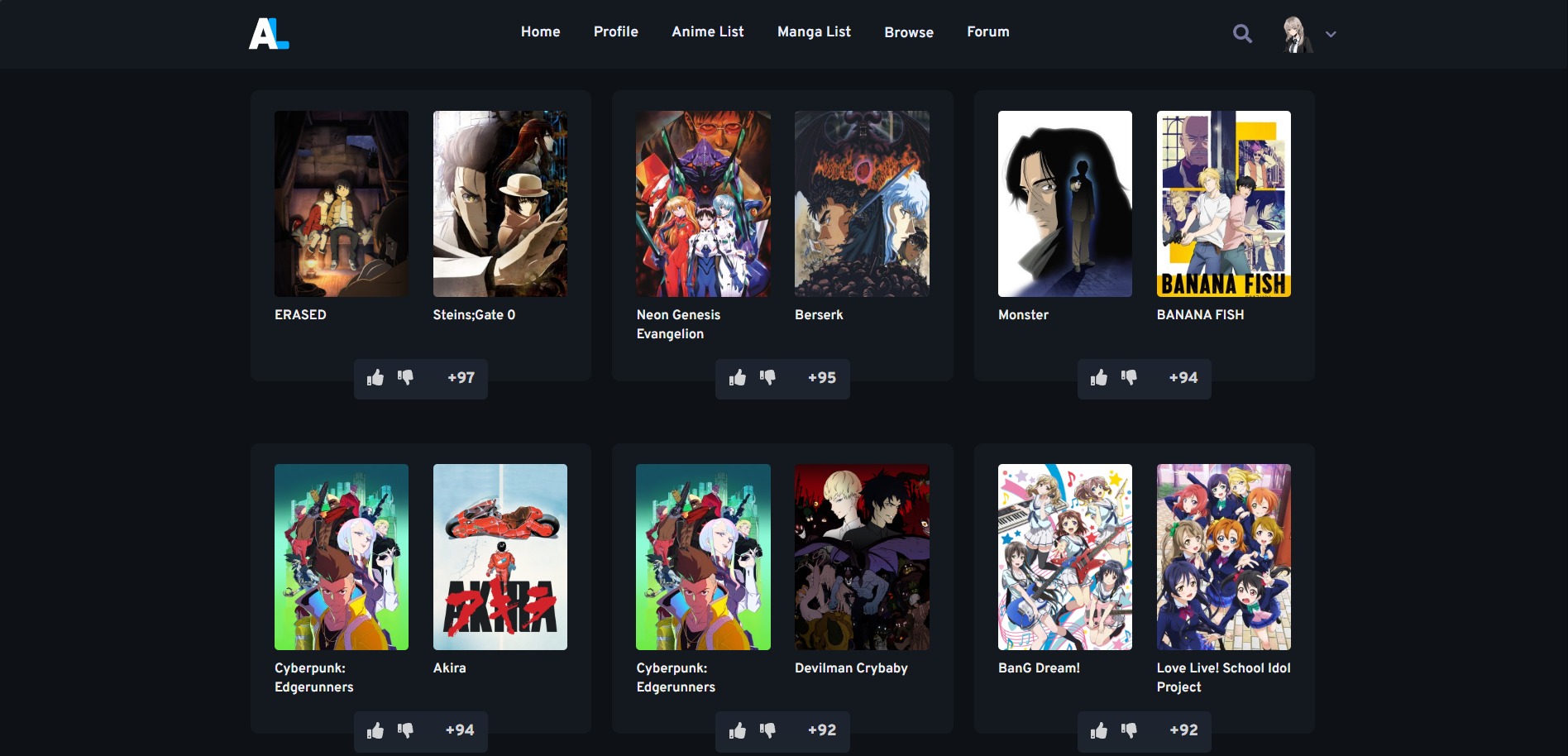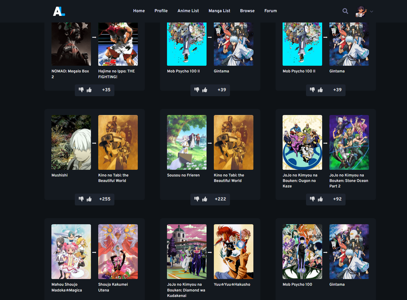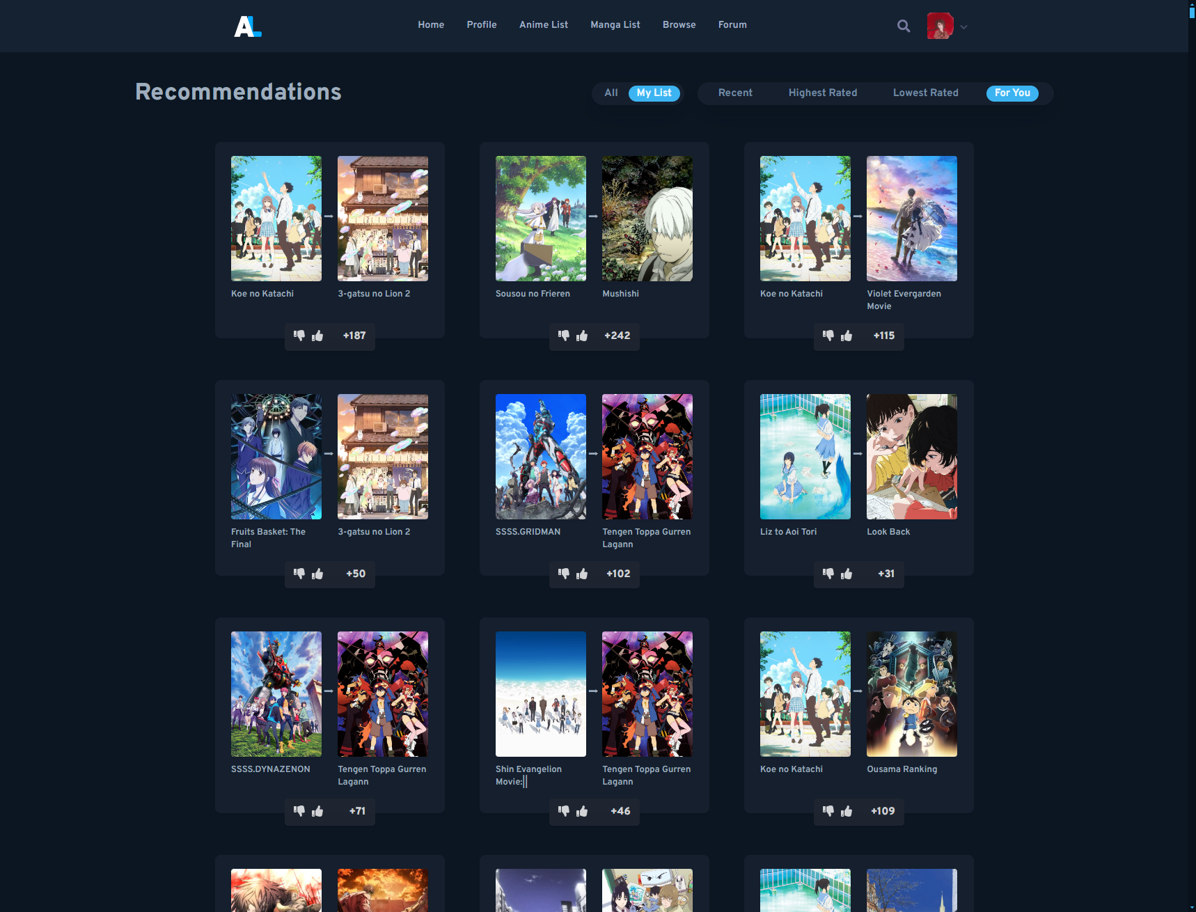 [✔️] Watch an anime from a pairing listed on AniList’s Recommendations page with 5 or more votes