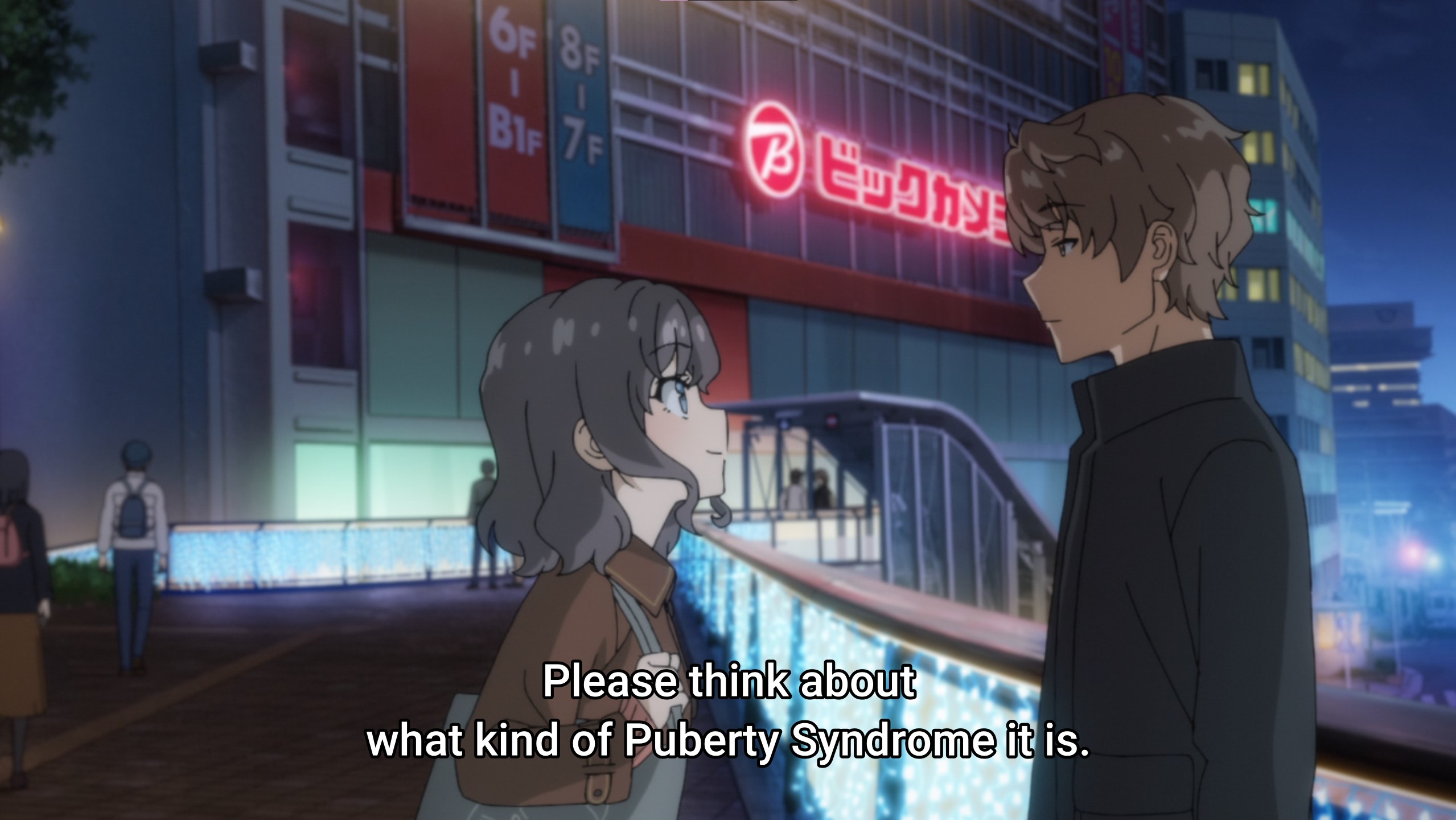 I think Sakuta will try and fix Himeji's puberty syndrome but she will twist his actions and frame it is as blackmail to stop him. There was a scene in episode 5 where she dropped her napkin while they were both in the elevator. This was where they bumped heads and it looked like there was some quantum entanglement involved. However, there was also one suspicious camera angle that was shown where it looked like they were kissing.