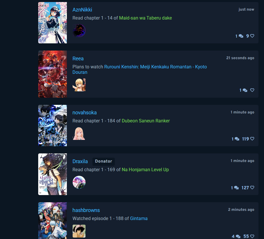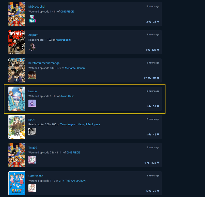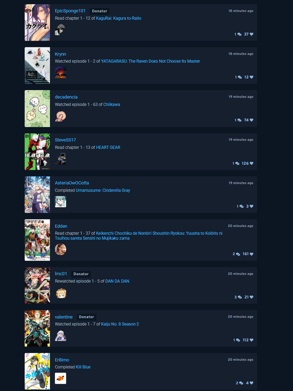 [👍] Doomscrolling: Watch an anime that appears in the Global Activity Feed