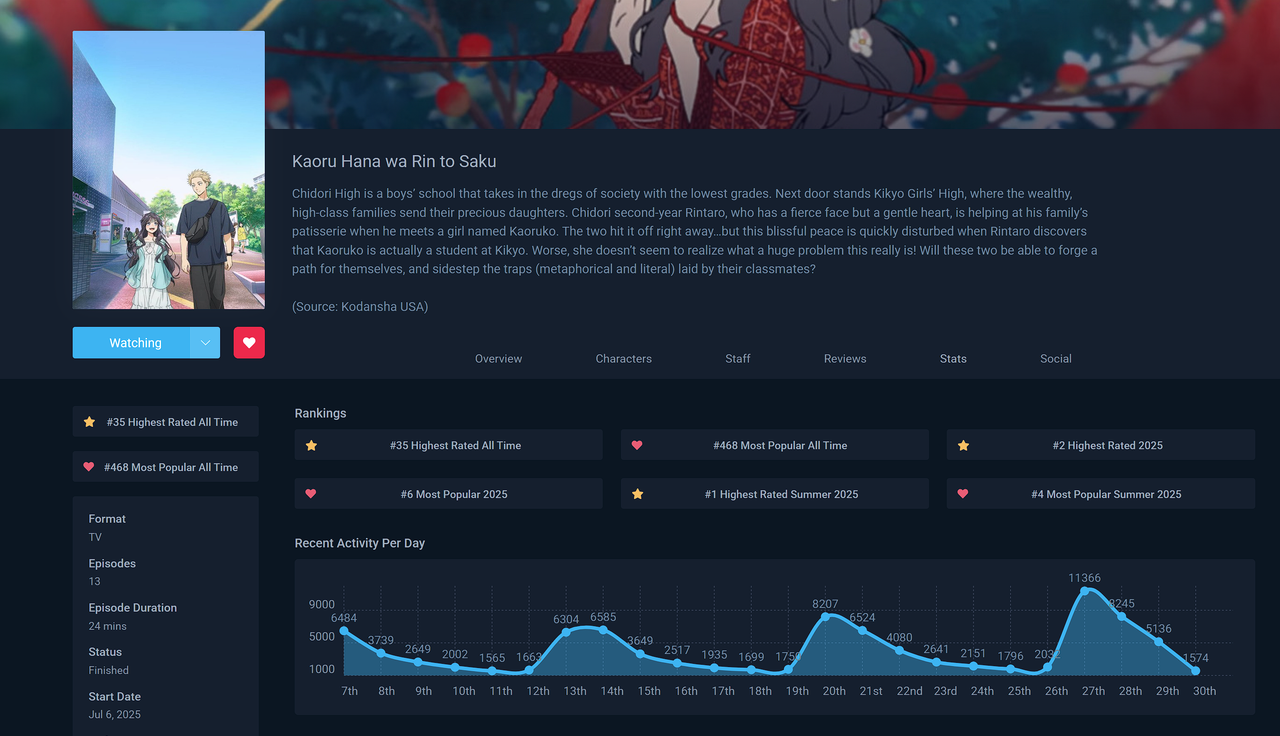 [⭐] Paranormal activity: Watch an anime with a point on its Recent Activity graph that has at least triple the activity of another point