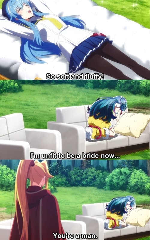 It's episodes like these that make me regret my conviction to not drop any anime after I've already invested some time into it. Bringing over modern-day vehicles to a fantasy setting without any rhyme or reason is one thing I hate, but then you immediately follow it up with the typical isekai-harem-fanservice slop, that from what I've read was entirely anime-original... If I didn't know that this was completely added in, I would've changed my mind about reading the manga, but at least now the taste hasn't been soured as much as it would've been otherwise for me. And yes, I hated it so much that I spent the entire "Oh LoOk A rAnDoM oNsEn" scene reading the comments in this thread and writing this.