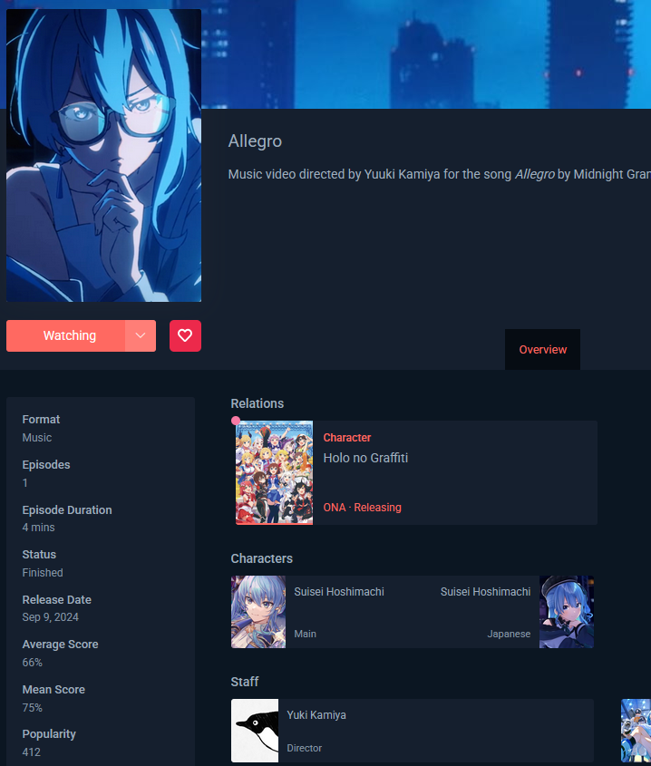 [O] Watch a Music Video with any tag from the “Technical” category in AniList's Advanced Genre & Tag Filter