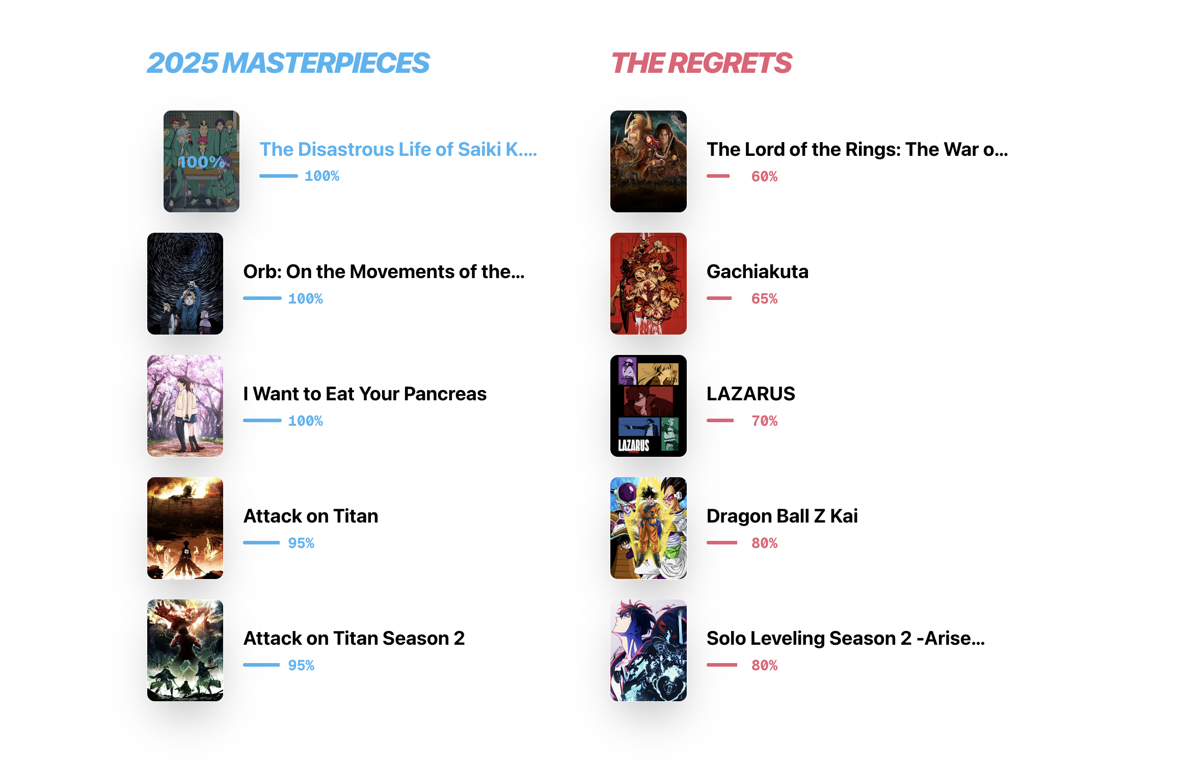 Why is one anime appearing 3 times? The regrets tab looks a little weird but makes sense because I think 70% was indeed the lowest score I gave this year.