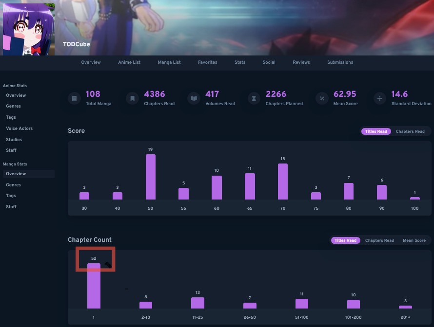 013) [❌] Read a manga with a chapter or volume count that is equal to any number that appears in your Manga Stats Overview page