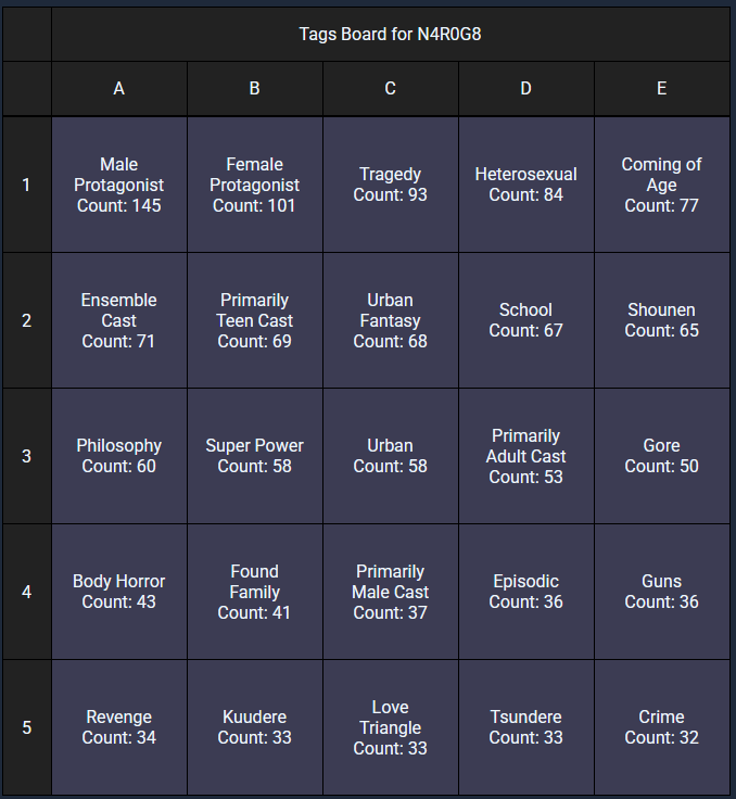 01) [✔️] Watch an anime with the format “TV” and any tag from the “Theme / Game-Card & Board Game” category in AniList’s Advanced Genre & Tag Filter
