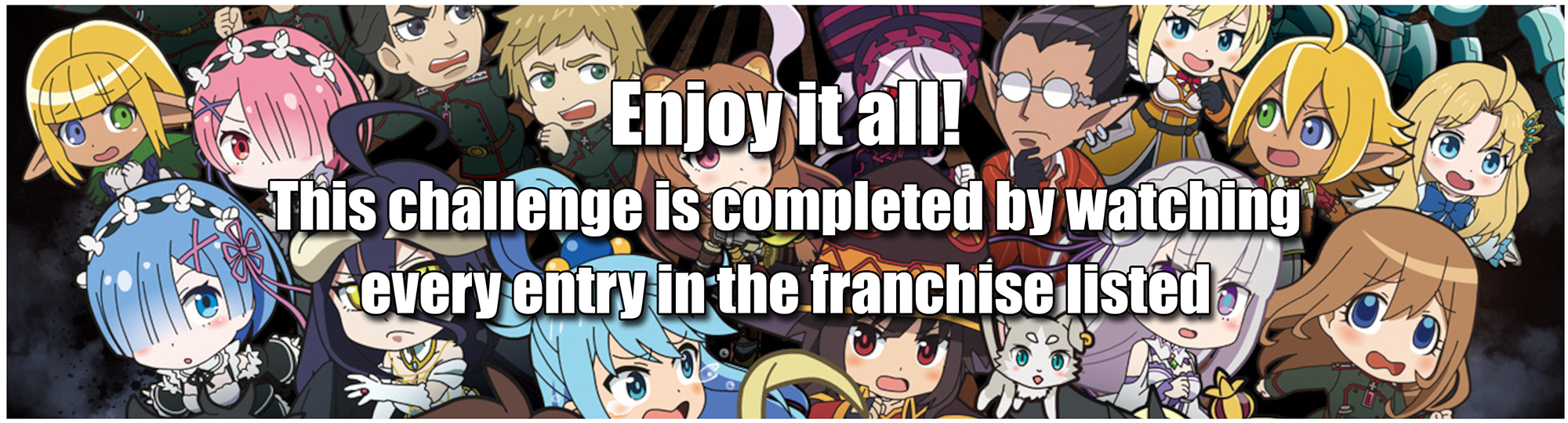 If you are having a difficult time finding an anime to fulfil a certain requirement, please feel free to ask us on Discord, ask in our Challenge Discussion Thread, or ask a fellow AniList member for a recommendation.