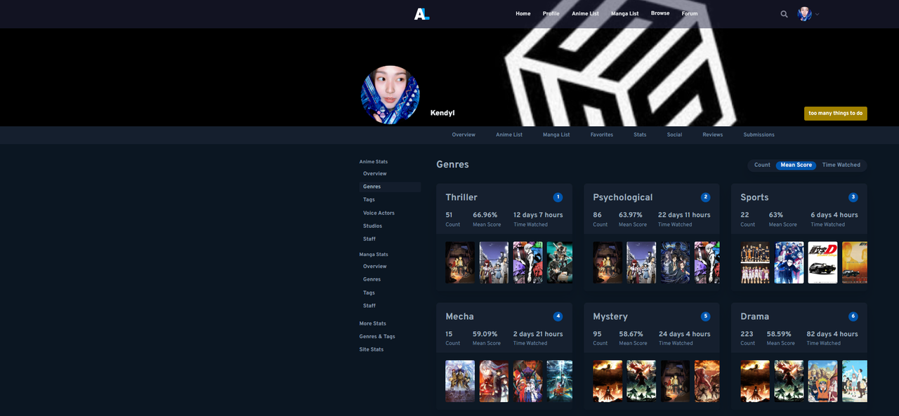 13R) [X] Reverse Death: Watch an anime with your highest rated genre and a mean score of 60% or less