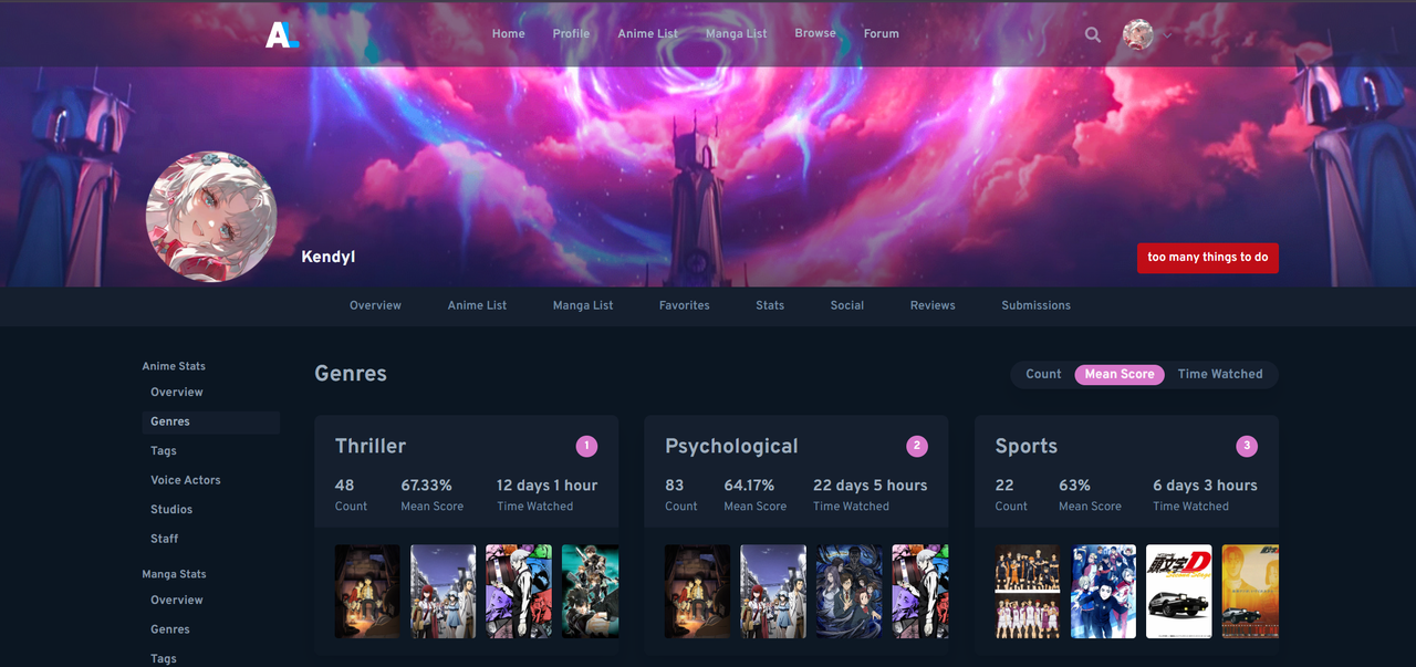 01) [O] Team Sheryl: Watch an anime with the genre “Mecha”