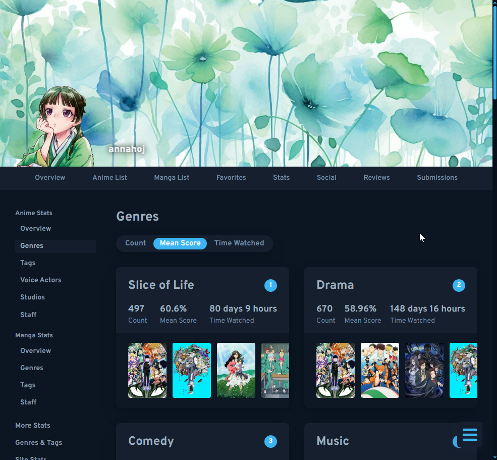 03) 🌸 Watch a "Drama" anime with a mean score of 70% or above on AniList