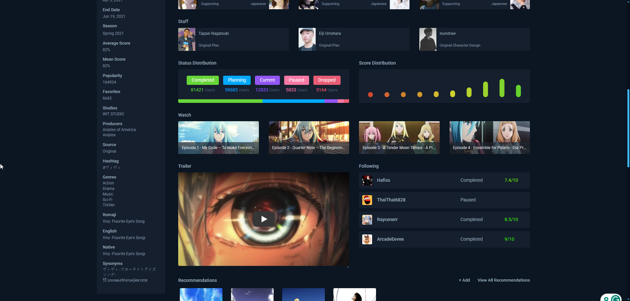 07) [O] Watch an anime with a Staff member whose profile image is a drawing instead of a photograph