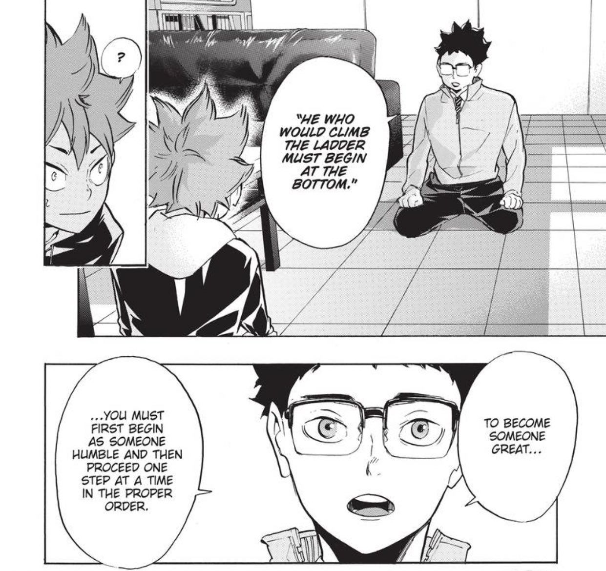 The messages from Haikyu are probably ones that I will integrate into my real life. "He who would climb a ladder must start from the bottom", this story is about growth and it is emphasised time and time again. Whether it was the difference between matches against Aoba Johsai, or the match against Shiratorizawa, or even the matches in the spring tournament, growth is shown in nearly every way possible. The series showcases the journey of several characters that improve themselves both on and off the volleyball court. However, the biggest message from Haikyu that resonated with me the most is finding joy in the journey. WInning is important, but what is more important is the enjoyment of the game and experiences gained along the way, and using these experiences to become even better. The last match in the spring tournament does this exceptionally well.